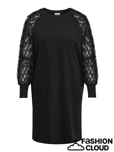 Kjolen har en flot rund hals og de smukkeste ærmer i let chiffon, som afsluttes med en klassisk cuff