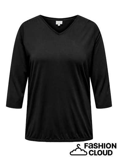 Blusen har trekvartærmer, som giver et elegant udtryk og gør den ideel i overgangssæsoner, hvor du ønsker en luftig, men stadig dækkende style. Den fine V-hals tilfører et feminint touch, mens elastikken i bunden sikrer, at blusen sidder flot og bliver på plads – uanset om du bruger den til bukser eller nederdel.