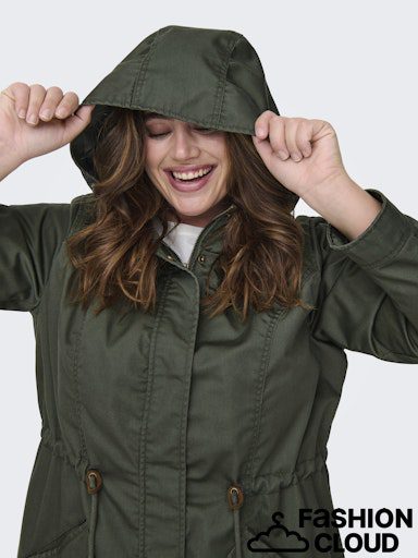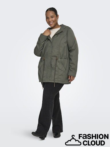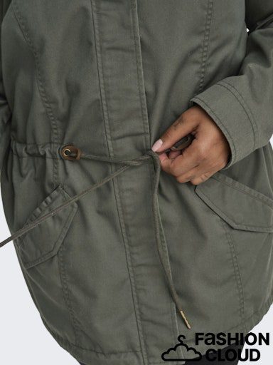 Carlorca Canvas Parka Coat fra Only Carmakoma er en super cool og funktionel forårsjakke, der kombinerer et råt udtryk med feminin pasform. Jakken er lavet i en slidstærk kvalitet af bomuld og polyester, som gør den perfekt til overgangsvejret.