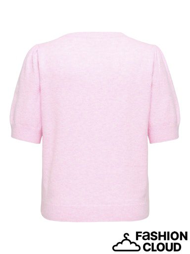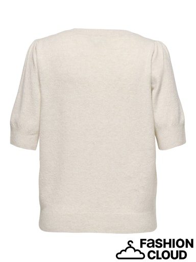 Pulloveren har et kort ærme med et fint lille puf, som tilfører et feminint og elegant udtryk. Den runde hals gør modellen klassisk og nem at style – perfekt både til hverdag og mere pæne anledninger.
