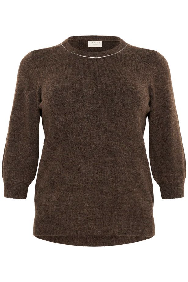 KCmerida Pullover fra Kaffe Curve er en elegant og komfortabel strik, der kombinerer enkelhed med eksklusive detaljer. Strikken er designet med et trekvart ærme, som afsluttes med ribkant – det samme gælder kanten forneden, hvilket giver en flot og velafsluttet pasform.