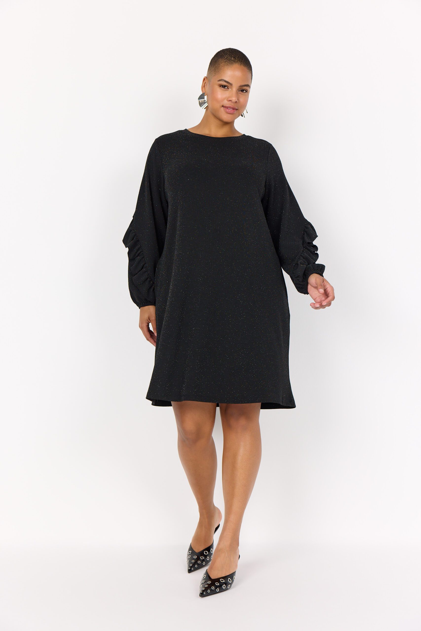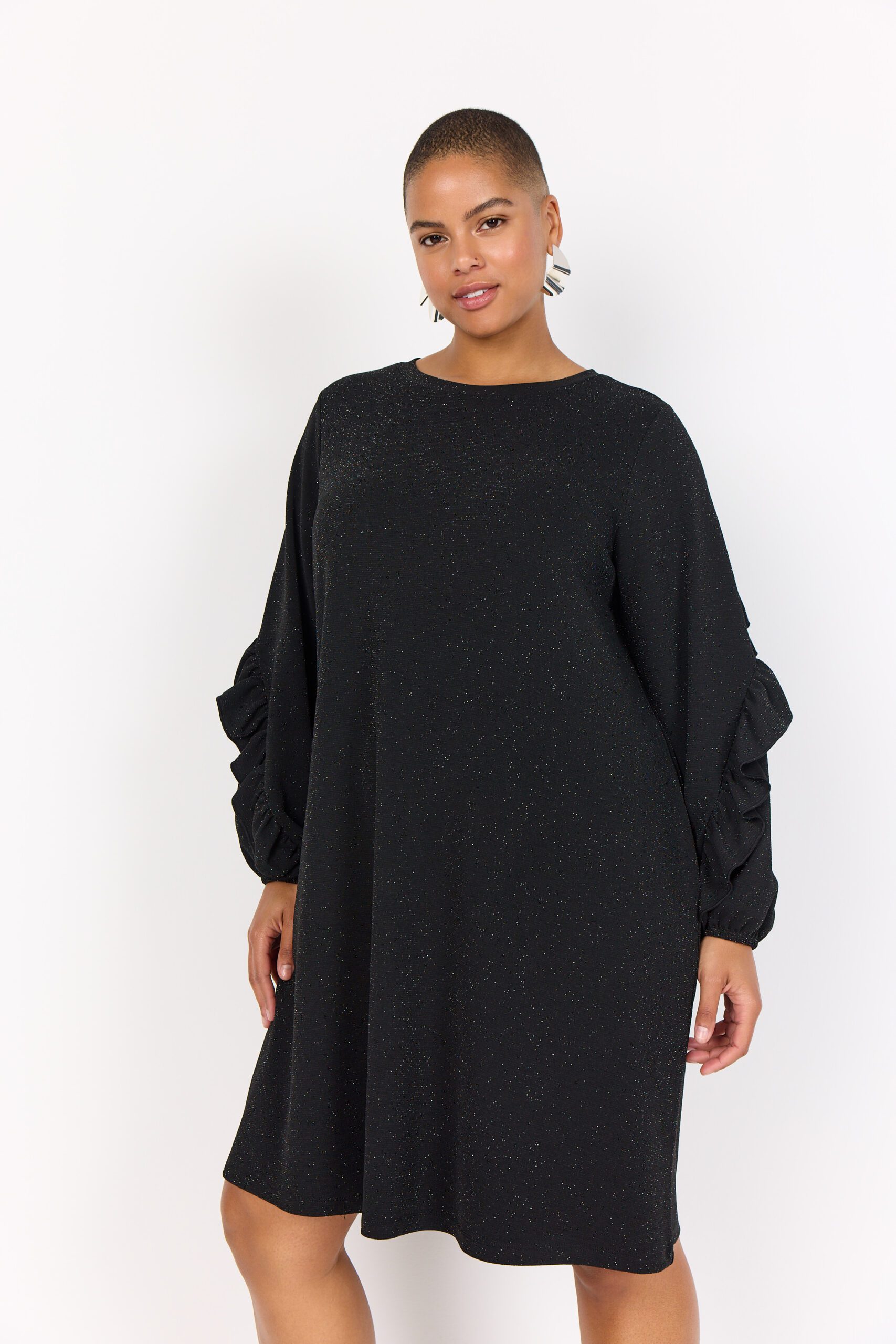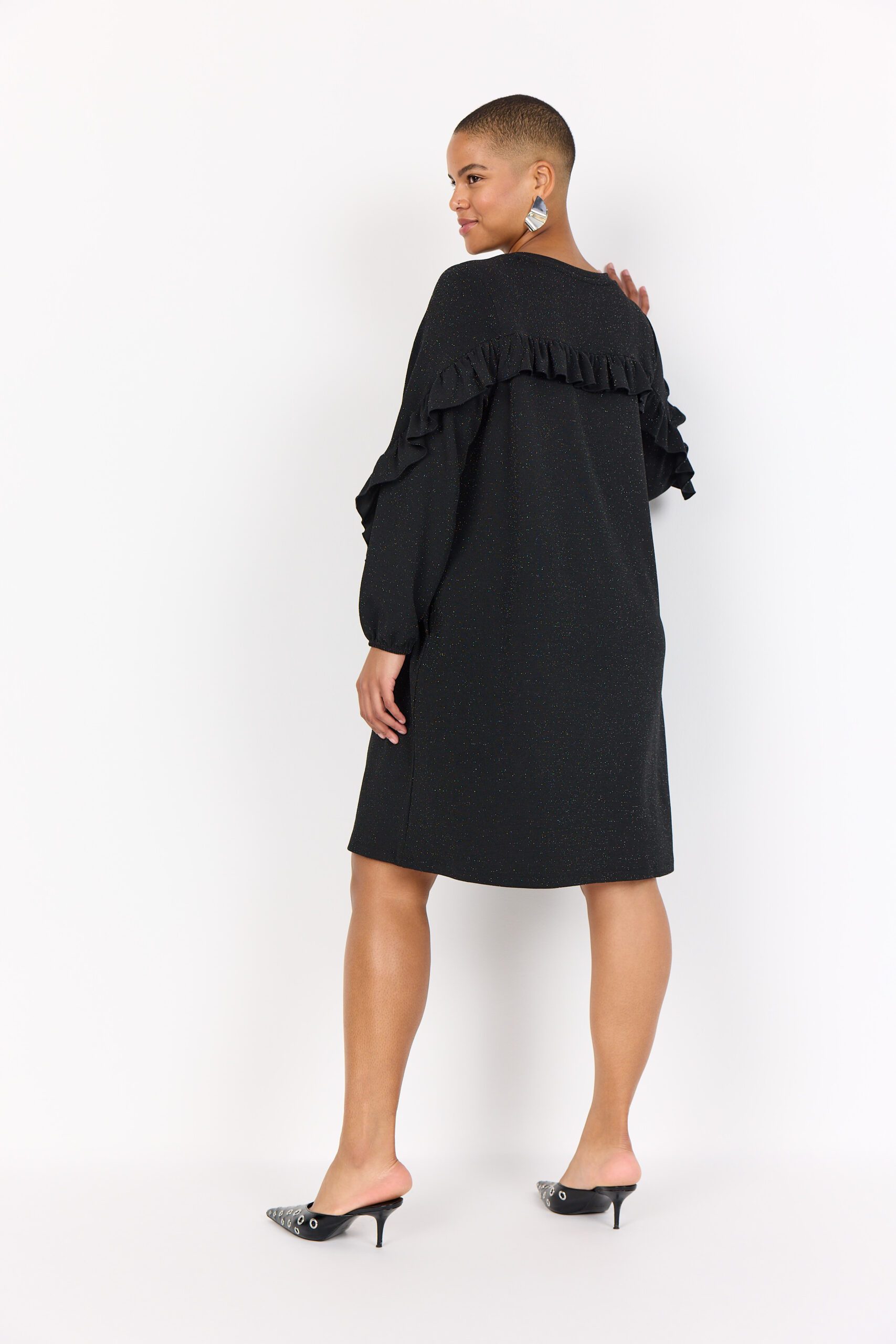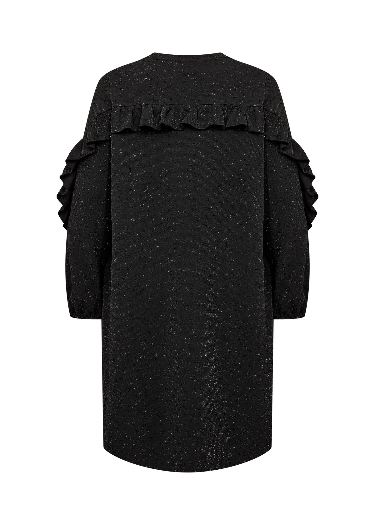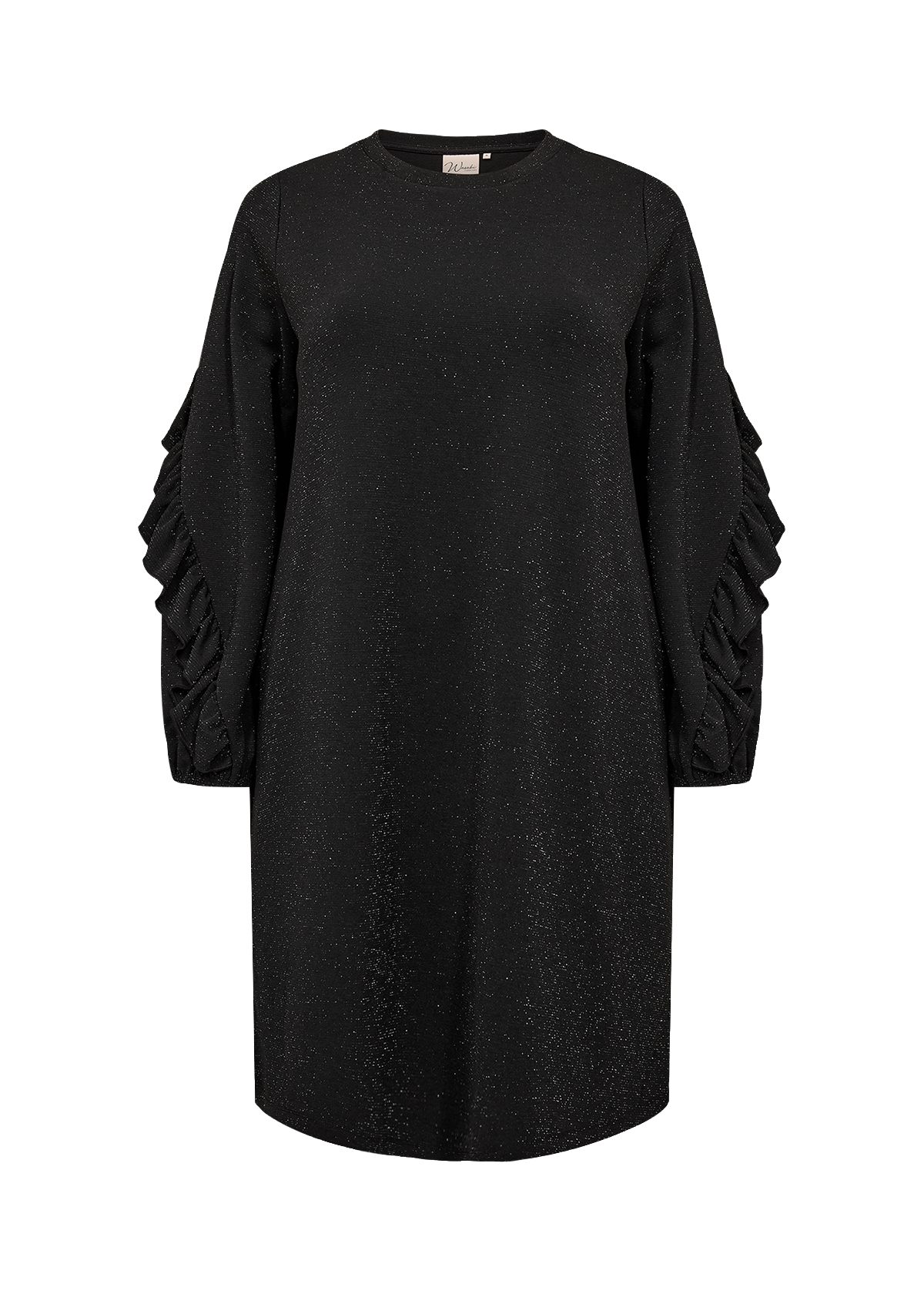Sanja Dress – Elegant sort kjole med glimmer og flæsedetaljer
