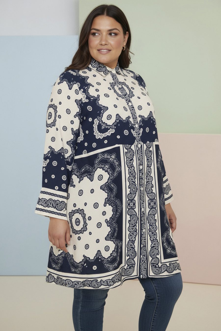 De 3/4-lange ærmer har god vidde, som giver et let og luftigt look. Tunic’en er fremstillet i 100% viscose, hvilket gør den blød, behagelig og let at bære – perfekt til både hverdag og mere pæne anledninger.