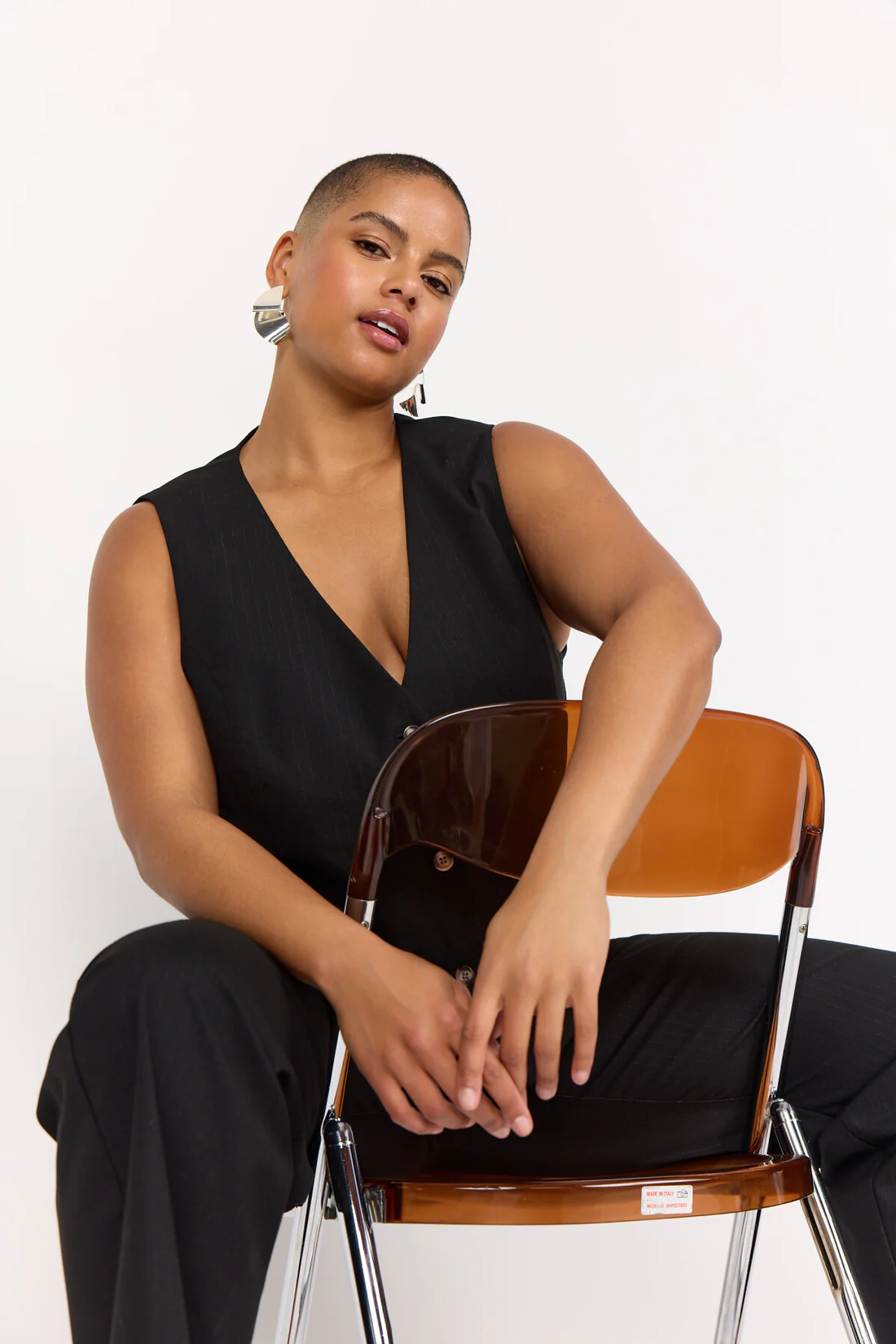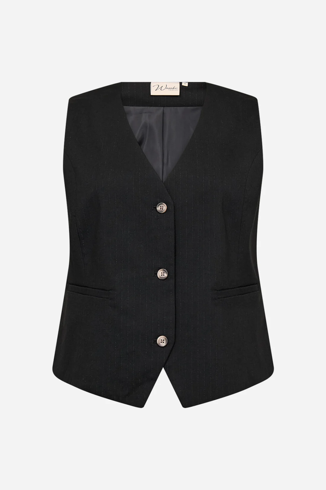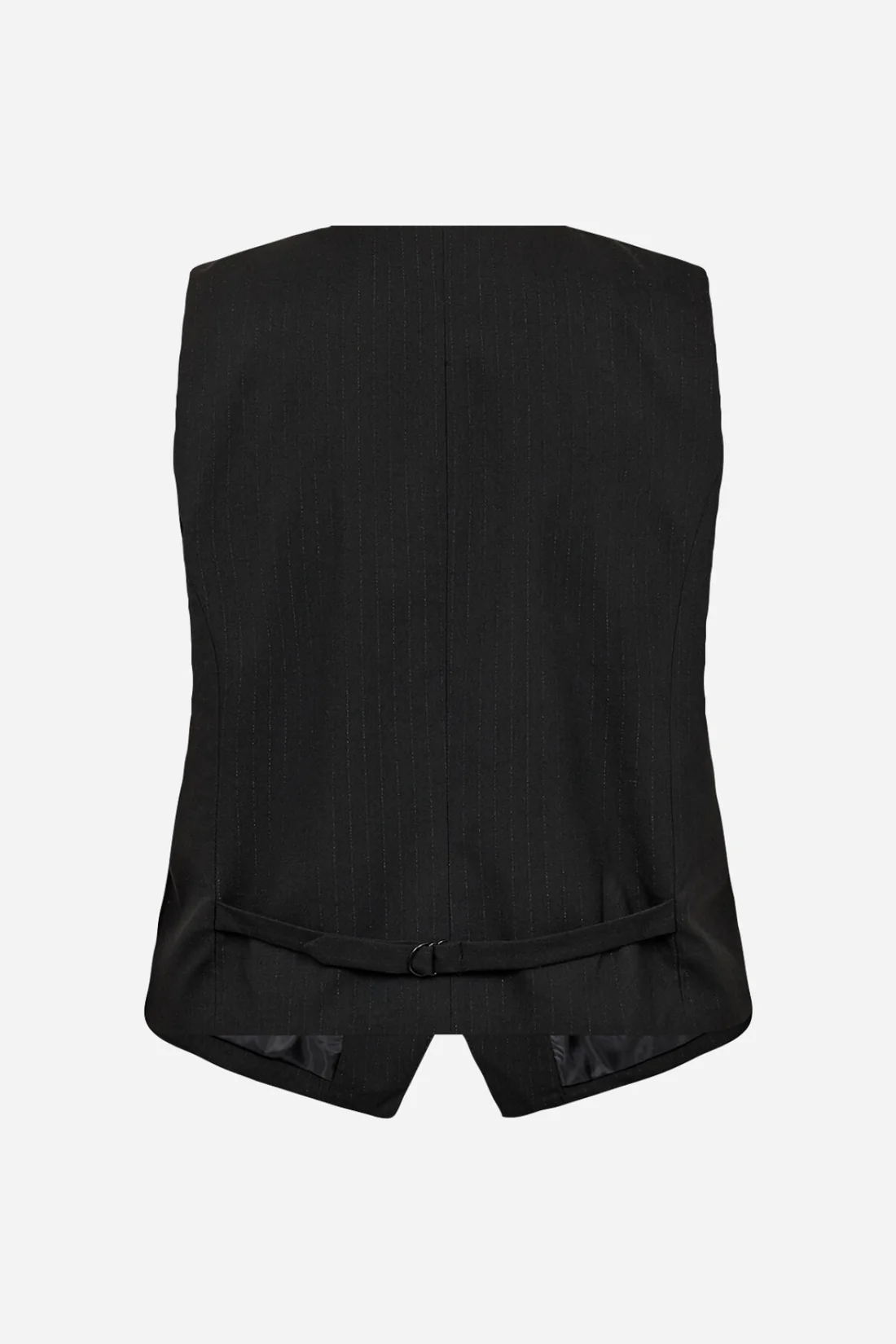 SindiVest er en mega cool sort vest med et diskret, næsten usynligt strejf af sølv, som giver et eksklusivt twist uden at stråle. Det minimalistiske look gør vesten nem at style og perfekt til tidens store vest-trend, som fylder meget i modebilledet lige nu.