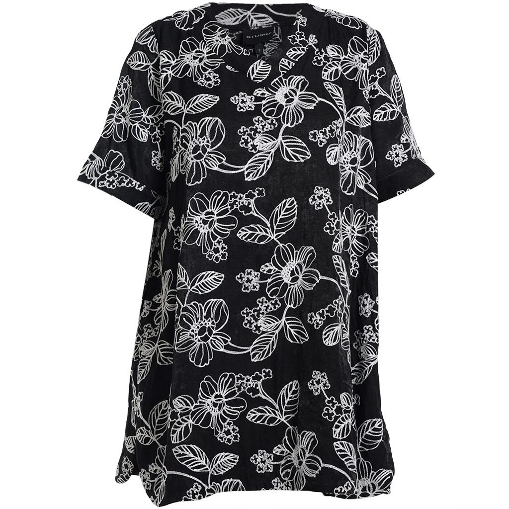 SKira tunika fra Studio er en smuk og elegant tunika, der kombinerer et klassisk sort udtryk med de fineste dekorative broderier. Det sorte bundstof giver et eksklusivt look, mens broderierne tilfører et feminint og iøjnefaldende touch.