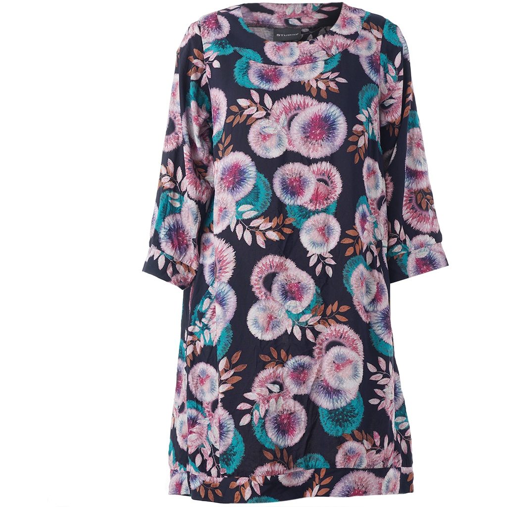 Lunetta Dress fra Studio er en elegant og let tunika, der kombinerer komfort med et stilrent udtryk. Den er lavet i 100% viskose, hvilket giver en dejligt blød og åndbar kvalitet – perfekt til både hverdag og lidt pænere anledninger.