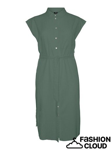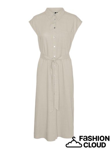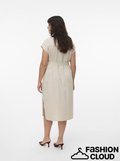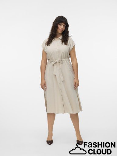 Denne stilrene kjole fra Vero Moda Curve er fremstillet i en let og naturlig kvalitet bestående af 55 % viskose og 45 % hør, som giver et luftigt og behageligt udtryk. Kjolen har en klassisk skjortekrave, brystlomme og er gennemknappet hele vejen ned. De meget korte ærmer understreger det sommerlige look. Kjolen kan styles både lukket som kjole eller åbenstående som let lag-på-lag, alt efter dit personlige udtryk.