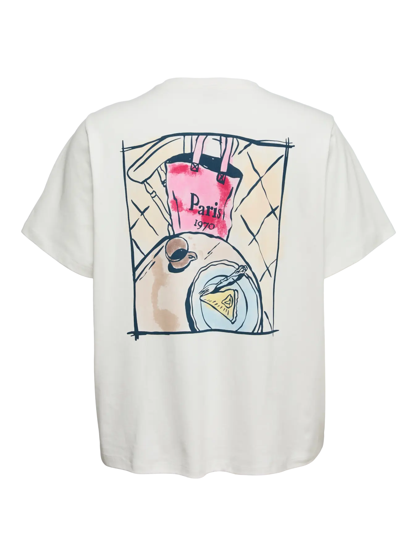 T-shirten har korte ærmer og en klassisk rund hals, som giver et tidløst og afslappet look. På ryggen finder du et super cool print, der tilføjer kant og personlighed til designet og gør T-shirten til noget helt særligt.